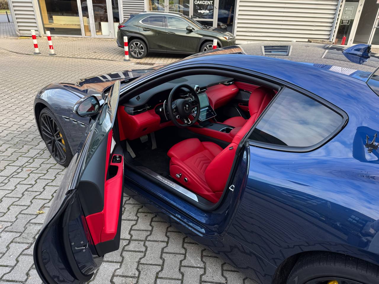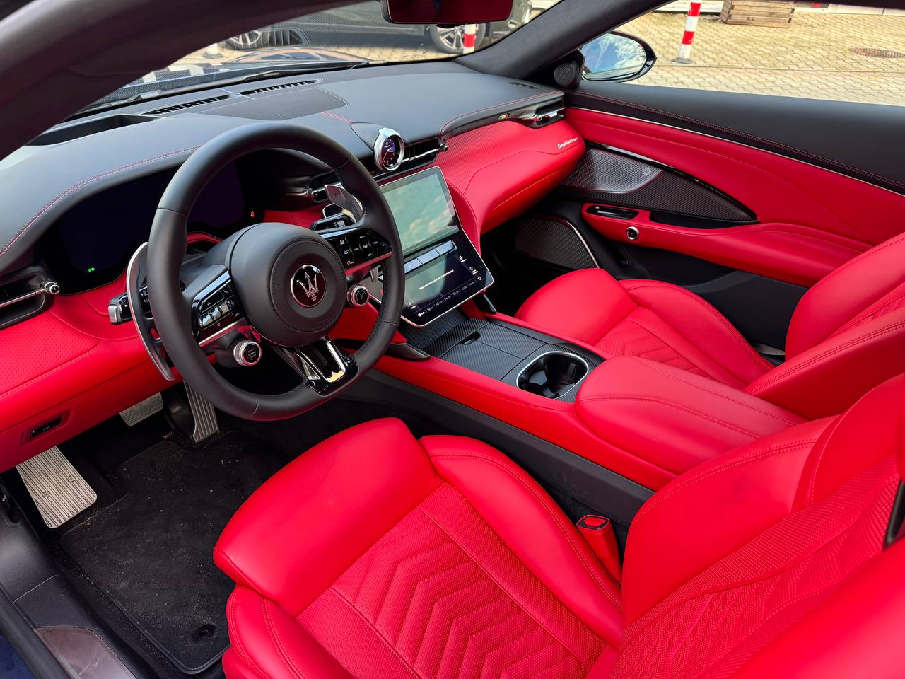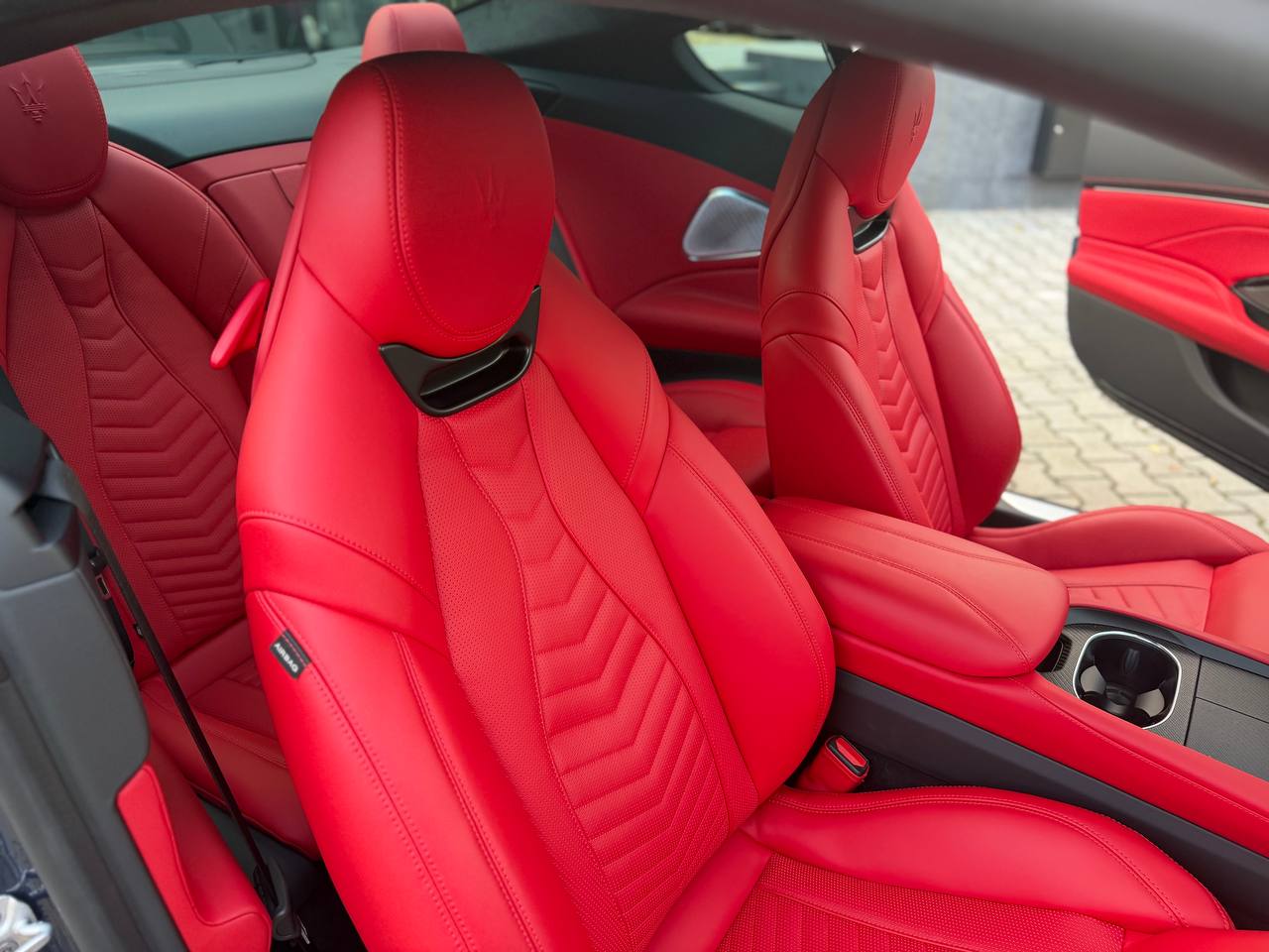 Listwa dolna w kolorze czarnym; Sportowe pedały (aluminium/stal nierdzewna) + aluminiowy podnóżek; Listwy progowe ze stali nierdzewnej z podświetlanym logo Maserati |