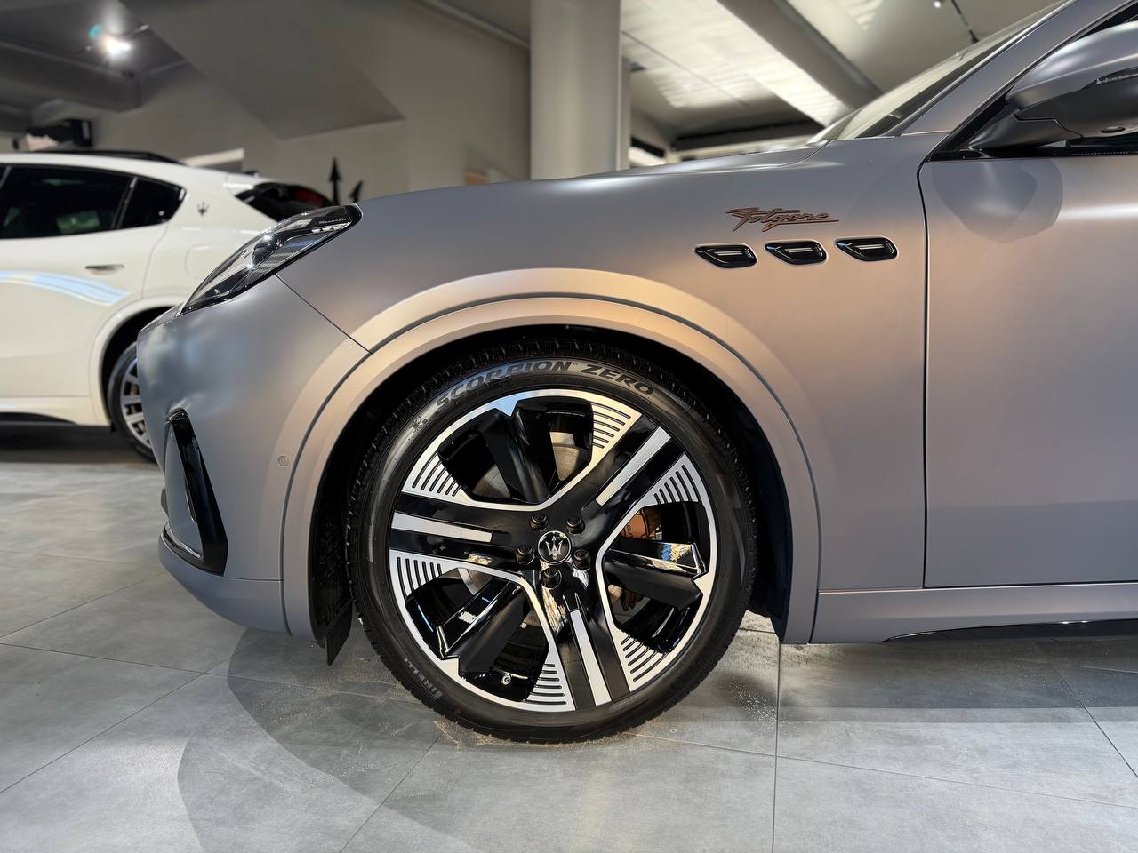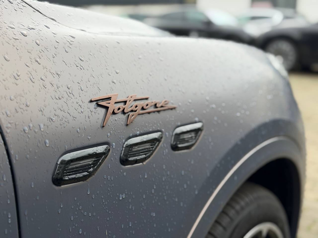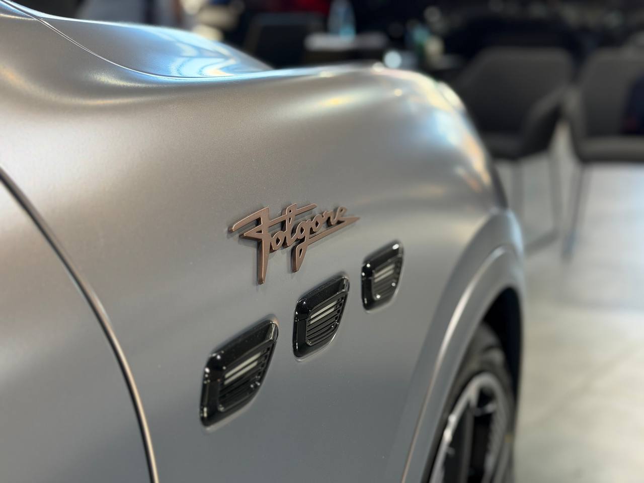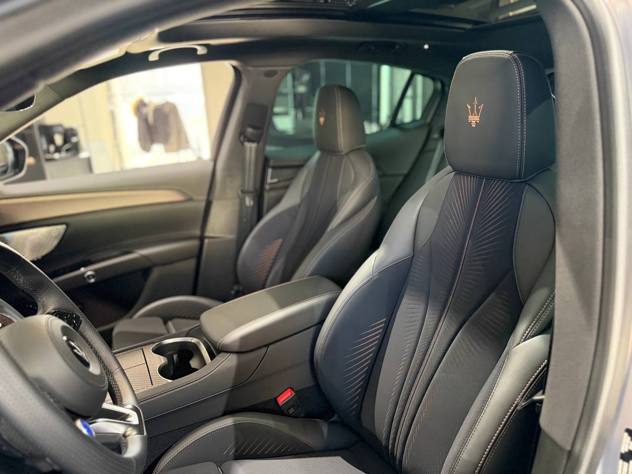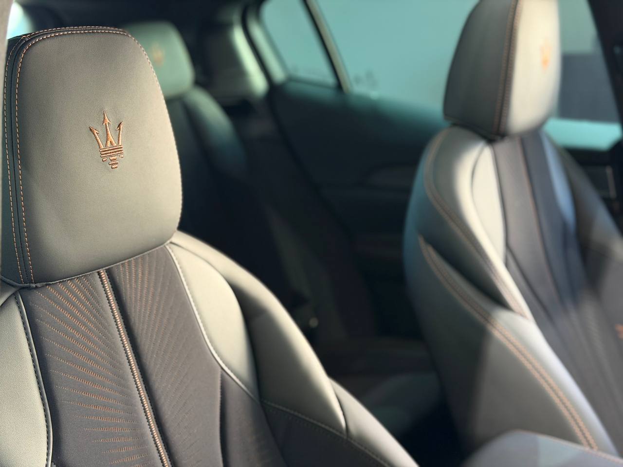podgrzewane tylne siedzenia, wentylacja przednich siedzeń, podgrzewana kierownica, podgrzewanie dysz spryskiwaczy szyby przedniej, Trójząb wyhaftowany na zagłówku |
